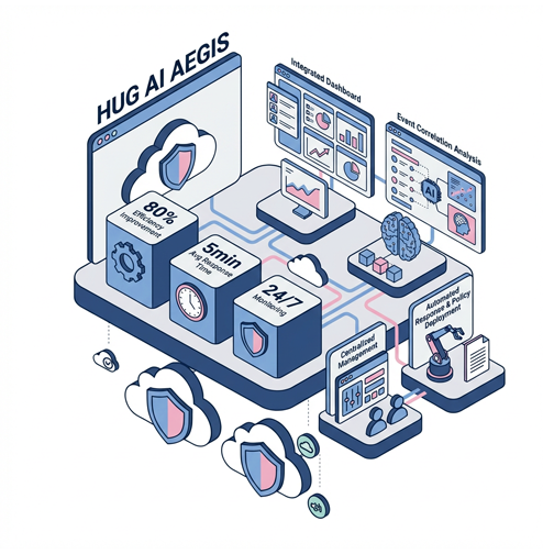 HUG AEGIS는 여러 보안 솔루션을 통합 관리하고 AI 기반 분석으로 위협을 자동 탐지·대응하는 차세대 보안 플랫폼입니다. 데이터 수집부터 분석, 대응, 리포팅까지 전 과정을 자동화한 통합 보안 아키텍처를 제공합니다.
